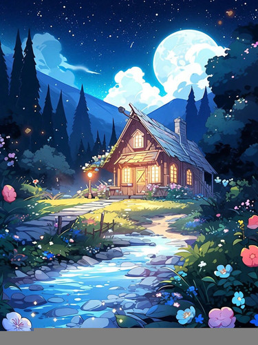 تابلوخام نقاشی باالماس طرح کلبه جنگلی مهتابیناموجود