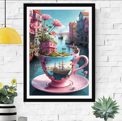 تابلوخام نقاشی با الماس فنجون دریا قایق گل-اورجینالتماس بگیرید