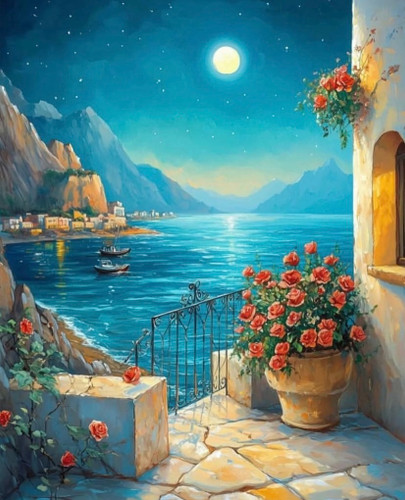 تابلوخام نقاشی با الماس طرح گلدون روی تراس ویلای ساحلی-اورجینالناموجود