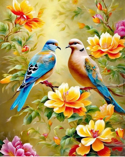 تابلوخام نقاشی با الماس طرح گل ومرغ-اورجینالناموجود