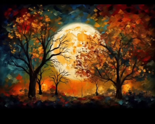 طرح خام نقاشی با الماس پاییزماه درخت-اورجینالناموجود