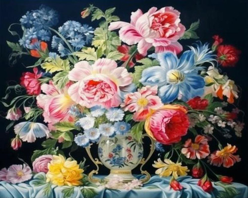 تابلوخام نقاشی باالماس طرح گلدون وگلهای بهاریناموجود