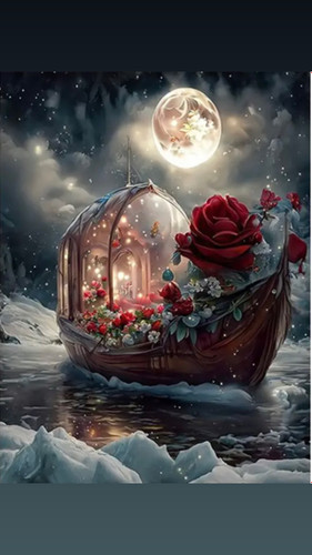 تابلوخام نقاشی با الماس طرح قایق گل رز_اورجینالناموجود