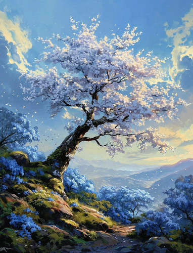 تابلوخام نقاشی باالماس طرح درخت باشکوفه های سفیدناموجود