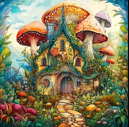 تابلو خام نقاشی باالماس طرح کارتونی کلبه قارچی فانتزی-اورجینالناموجود