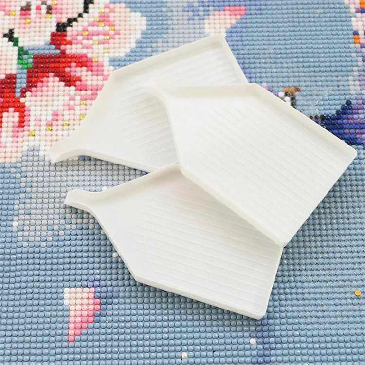 سینی مخصوص نقاشی باالماس از جنس پلاستیک است.ابعاد آن 9سانتی متر طول وعرض آن 6سانتی متراست وارتفاع آن 1سانتی متراست ودارای دهانه است .رنگ آن سفید است.شیارهایی که درته ظرف هست باعث دسترسی راحت ترالماسها می شود.