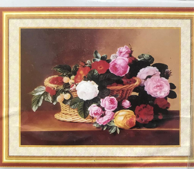 الماسها،سینی الماس ،چسب وقلم است.ابعادطرح سبد گل حصیری 74در57 است.طرح کامل الماس نیست