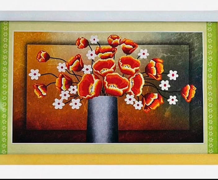 تابلو خام نقاشی باالماس گلدون وگل شقایق فانتزی