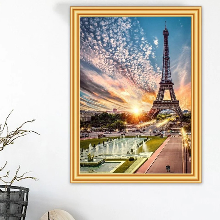 تابلوخام نقاشی باالماس طرح برج ایفل آفتابی