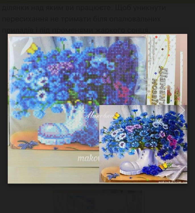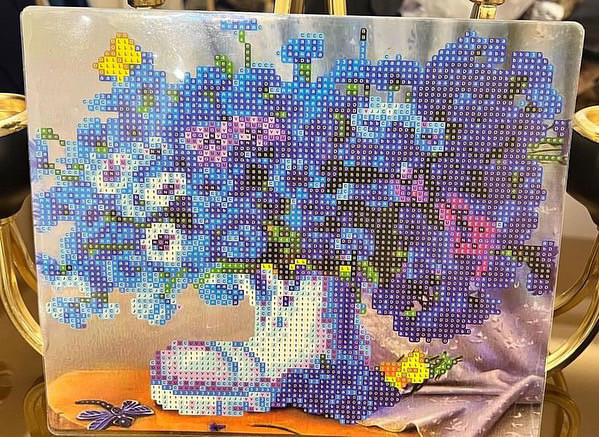 تابلوخام نقاشی باالماس طرح پوتین وگلهای آبی(ابعادکوچک)