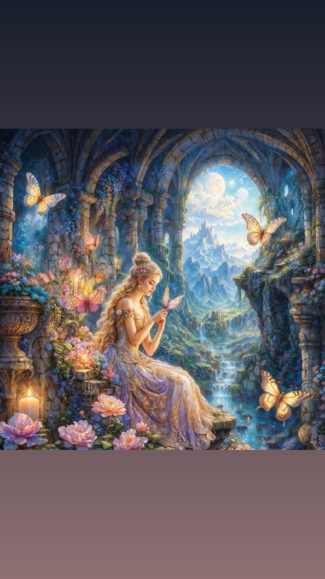 تابلوخام نقاشی باالماس طرح پرنسس وپروانه رنگارنگ
