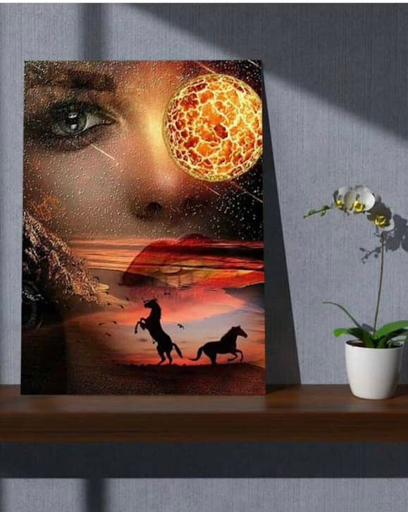 تابلو خام نقاشی باالماس طرح چهره زن وغروب
