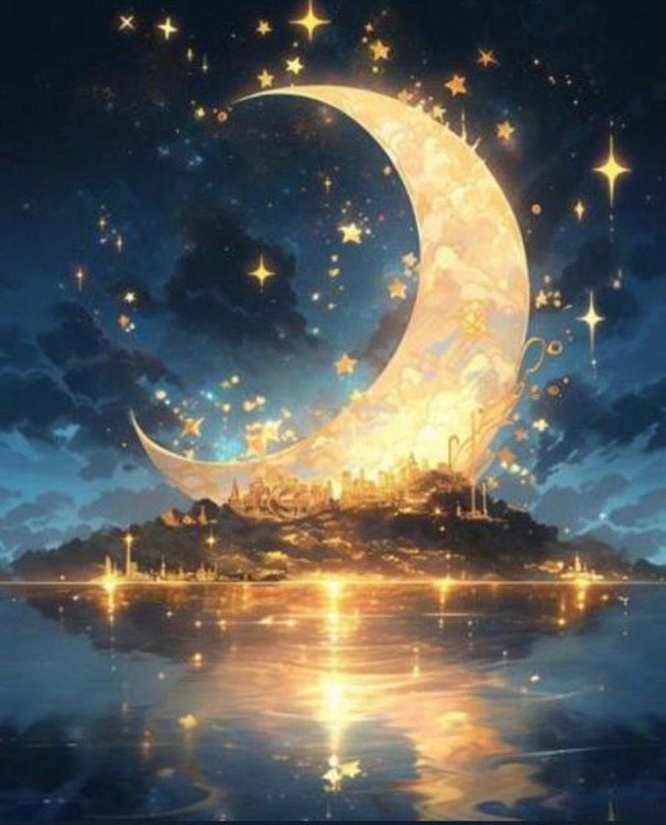 تابلوخام نقاشی باالماس طرح هلال ماه طلایی -اورجینال