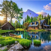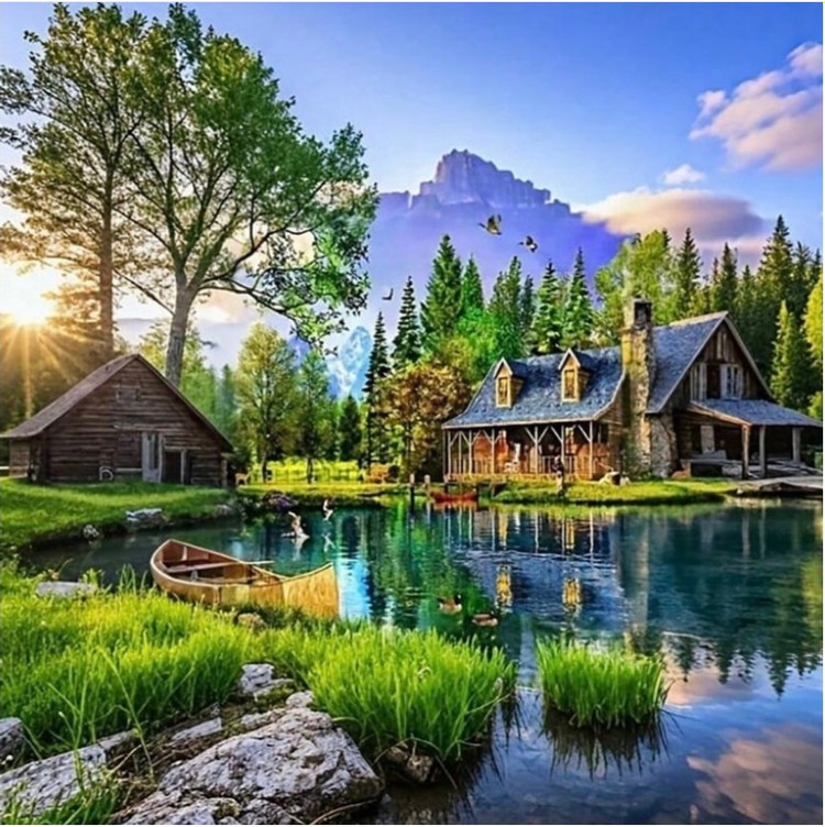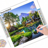 تابلوخام نقاشی با الماس منظره طلوع کناررودخانه-اورجینال