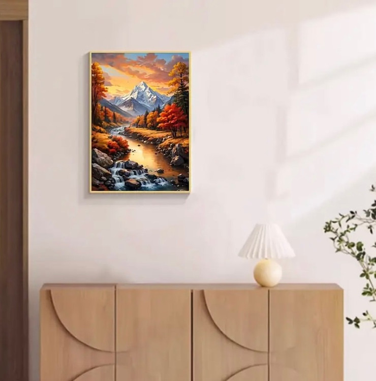 نقاشی باالماس طرح :پاییزدرکوهستان ابعاد:پارچه کنوا