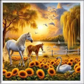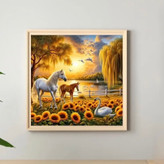 تابلو خام نقاشی باالماس طرح :اسب هادرمزرعه آفتابگردان -اورجینال