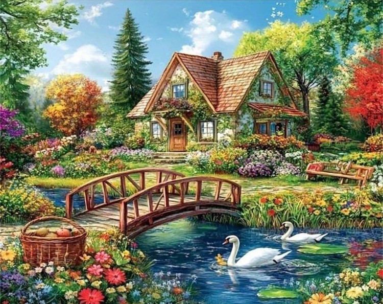 تابلو خام نقاشی باالماس طرح :پل چوبی-اورجینال