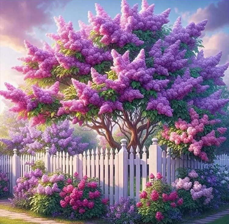 تابلو خام نقاشی باالماس طرح : درخت یاس بنفش -اورجینال