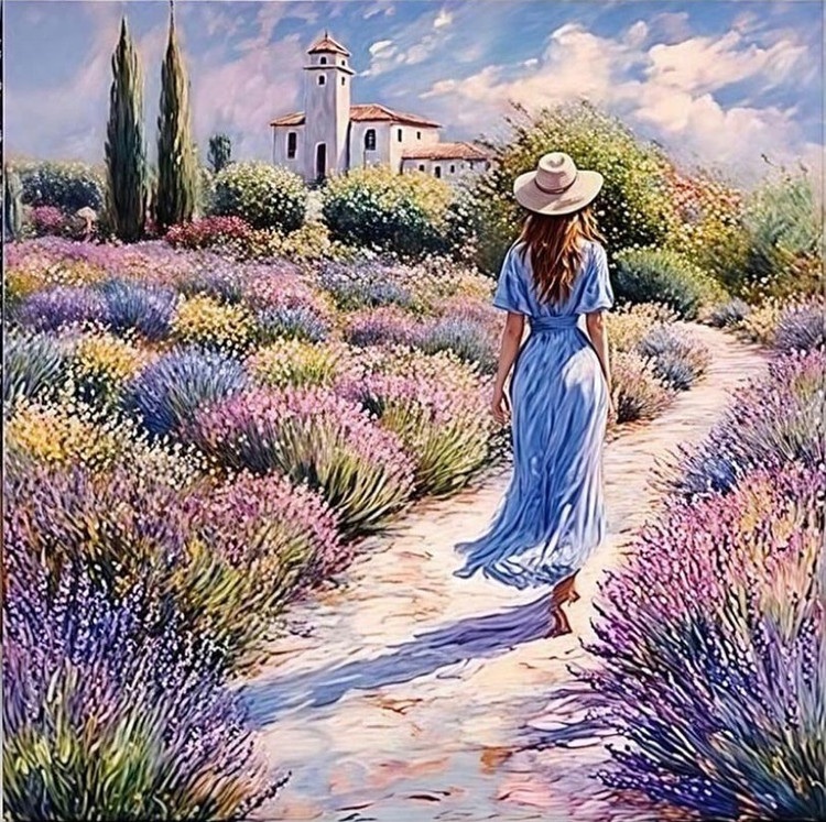 تابلوخام نقاشی باالماس طرح :دشت گلهای لوندر-اورجینال