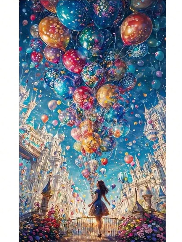 تابلو خام نقاشی باالماس طرح :" پرواز بادکنکها "