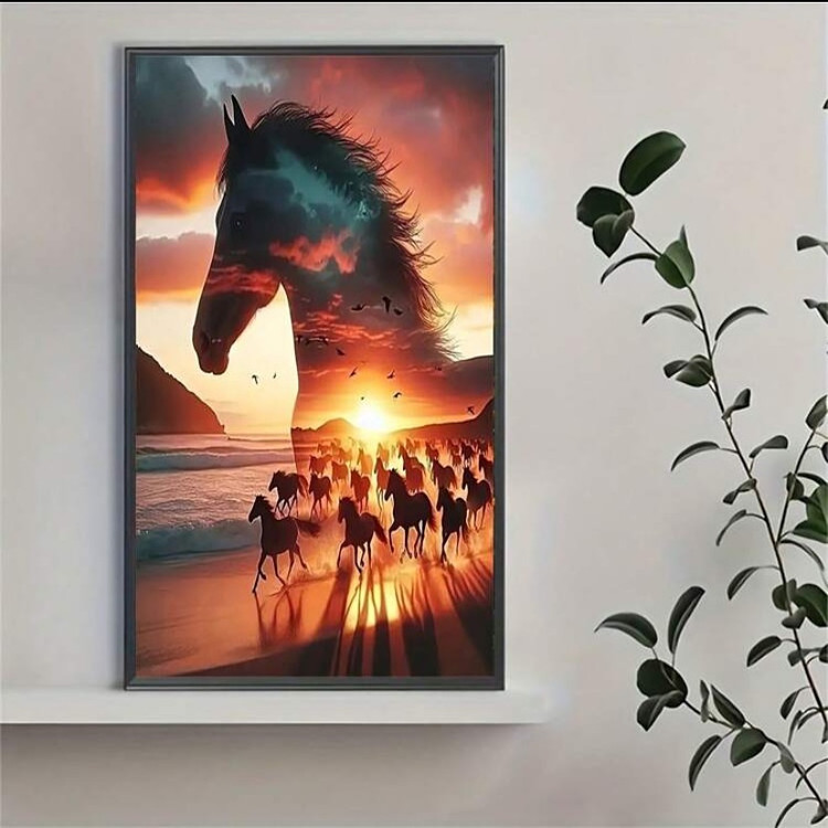 تابلو خام نقاشی باالماس طرح : اسبهای دونده-اورجینال