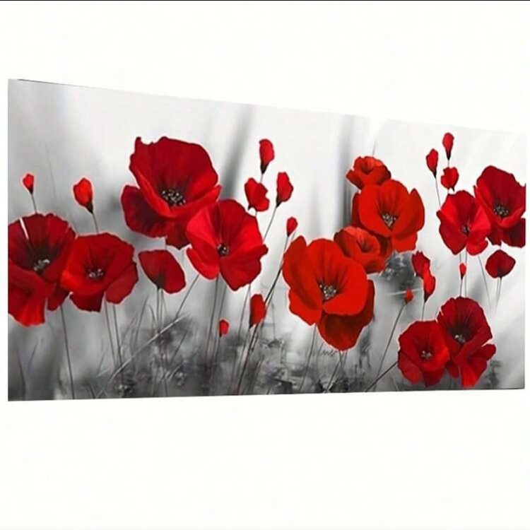 نقاشی با الماس طرح گلهای شقایق با ابعاد ۴۰*۷۰