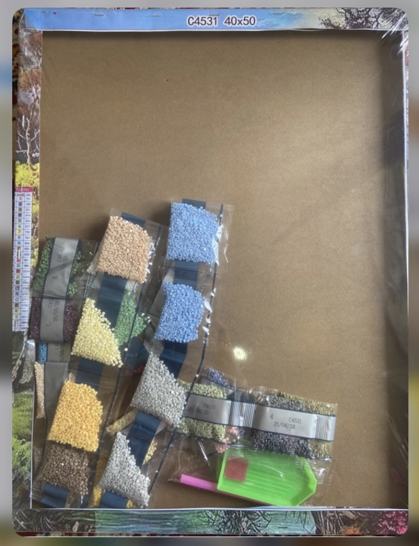 تابلو الماسی بومدار ابعاد:40*50 ابعاد:30*40 الماس گرد پک شامل طرح خام الماسها سینی قلم چسب تابلو دارای بوم چوبی می باشد