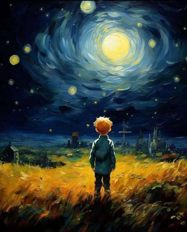 تابلو نقاشی با الماس بومدار طرح شازده کوچولو‌وشب پرستاره-اورجینال