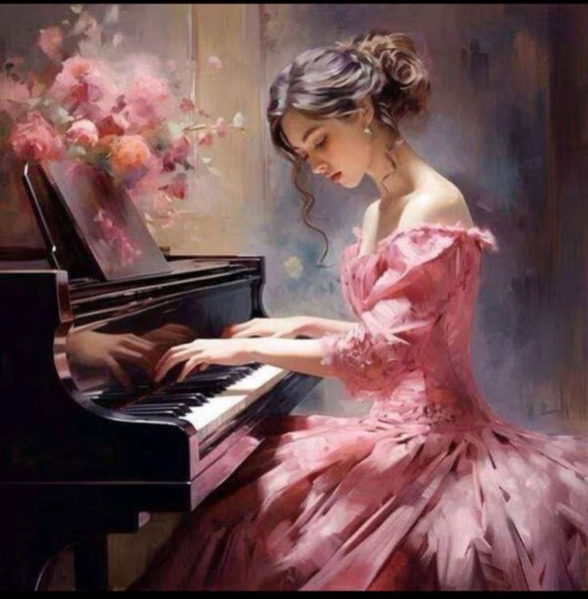 تابلو بومدار خام نقاشی با الماس طرح پیانیست-اورجینال