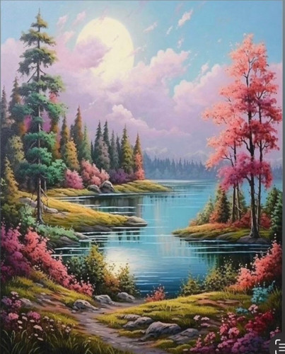 تابلو خام نقاشی باالماس طرح غروب روخانه ودشت گلها_اورجینال۱٬۲۵۰٬۰۰۰ 8%